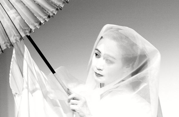 Butô, der dunkle, stampfende Tanz, ist mittlerweile auch in Leipzig gut bekannt. Dagegen dürfte Nihon-Buyô, der rund 300 Jahre alte sanftere Tanz, wie er sich im Kabuki findet, und von dem sich Butô als neuer Begriff abzusetzen suchte, hierzulande kaum zu erleben sein.